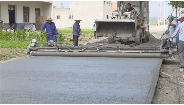 在界首市泉阳镇农村公路畅通工程混凝土搅拌站,一台大型铲车不停把砂石、水泥装进搅拌机里,两台大型搅拌机不停在运转,三轮车来回穿梭,把搅拌好的混凝土运到施工现场。经过打板、震压、抛光,一条平整光滑的水泥路展现在人们面前。