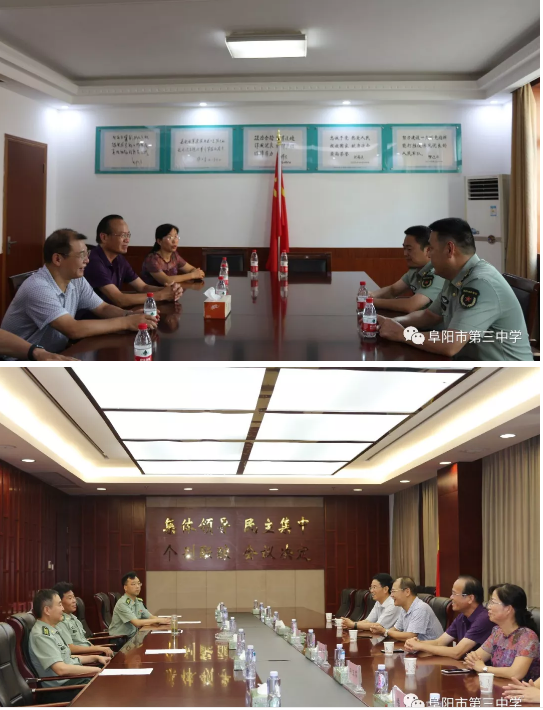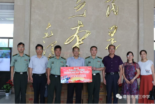 时值”八一” 建军节来临之际,8月1日上午8点,阜阳三中党委书记、校长耿云龙一行走访慰问了阜阳军分区和颍州区人民武装部,送去大米、食用油等慰问物资,向驻阜官兵们致以节日的问候和崇高的敬意。副