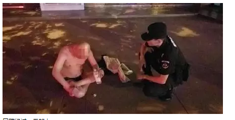9月15日凌晨3时左右,颍泉巡防大队民警在人民路夜巡时,发现在百货大楼门口有一男子醉酒不省人事。民警立即联系救护车,谁知醉酒人员顿时清醒,拒绝前往医院。拿着民警送给的矿泉水,指着瓶子要跟民警“再炸一个